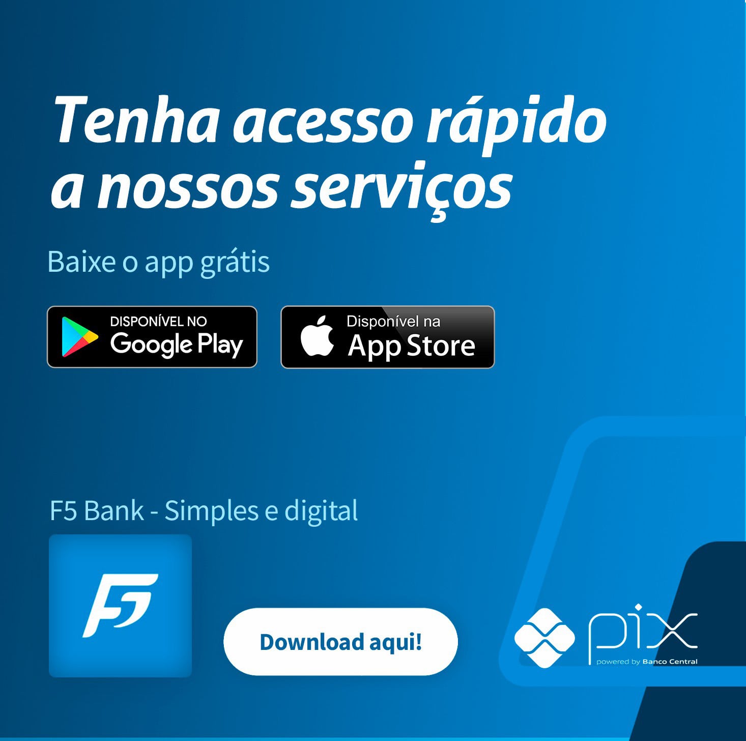 A F5 Bank é uma subadiquirente regulamentada pela Lei 12.865/2013 e resolução 4.656/2018 do Banco Central do Brasil. Fazemos parte de um grupo sólido e transparente, com credibilidade e confiança no mercado de meios de pagamento. Temos a segurança de parceiros de peso, nosso BackOffice é garantido por instituições financeiras renomadas, bem como adquirentes de grande lastro com mais de 20 anos de mercado e que fazem parte do FGC (Fundo Garantidor de Crédito).
